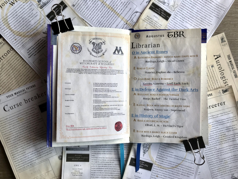 Vervolgens maakte ik twee dutch doors: een eerste van de Hogwarts brief met de opdrachten van de N.E.W.T.s; een tweede van mijn eigen TBR.