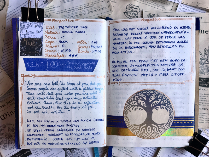 Om aan te geven voor welke N.E.W.T. ik het boek las, gebruikte ik blauwe washi waarop ik schreef met witte gelpen.